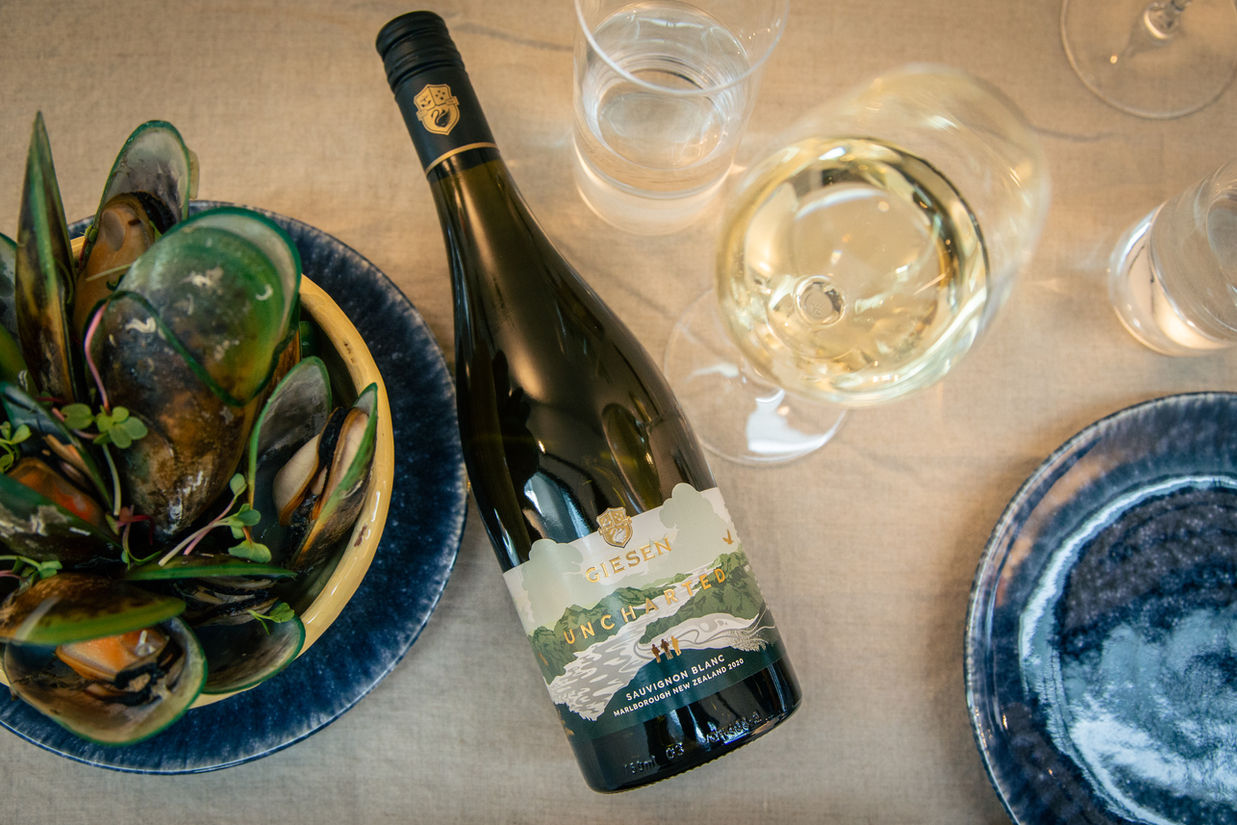 Green-lipped mussels steamed in fresh chilli, onion, a generous splash of our Uncharted Sauvignon Blanc and some freshly cut herbs make for a perfect celebration of Marlborough as a region.